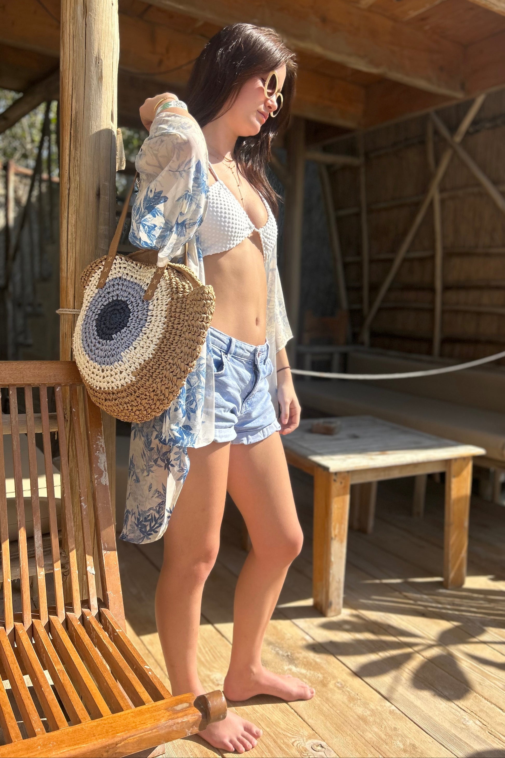 Kimono with wide kimono sleeve and medium length. This style is shorter at the front and longer at the back and comes with an optional belt. So you can wear it loose with out the belt, or with. Chiffon fabric and free size up to UK16. Such a pretty pale blue and white print! Longer batwing is now sold out.