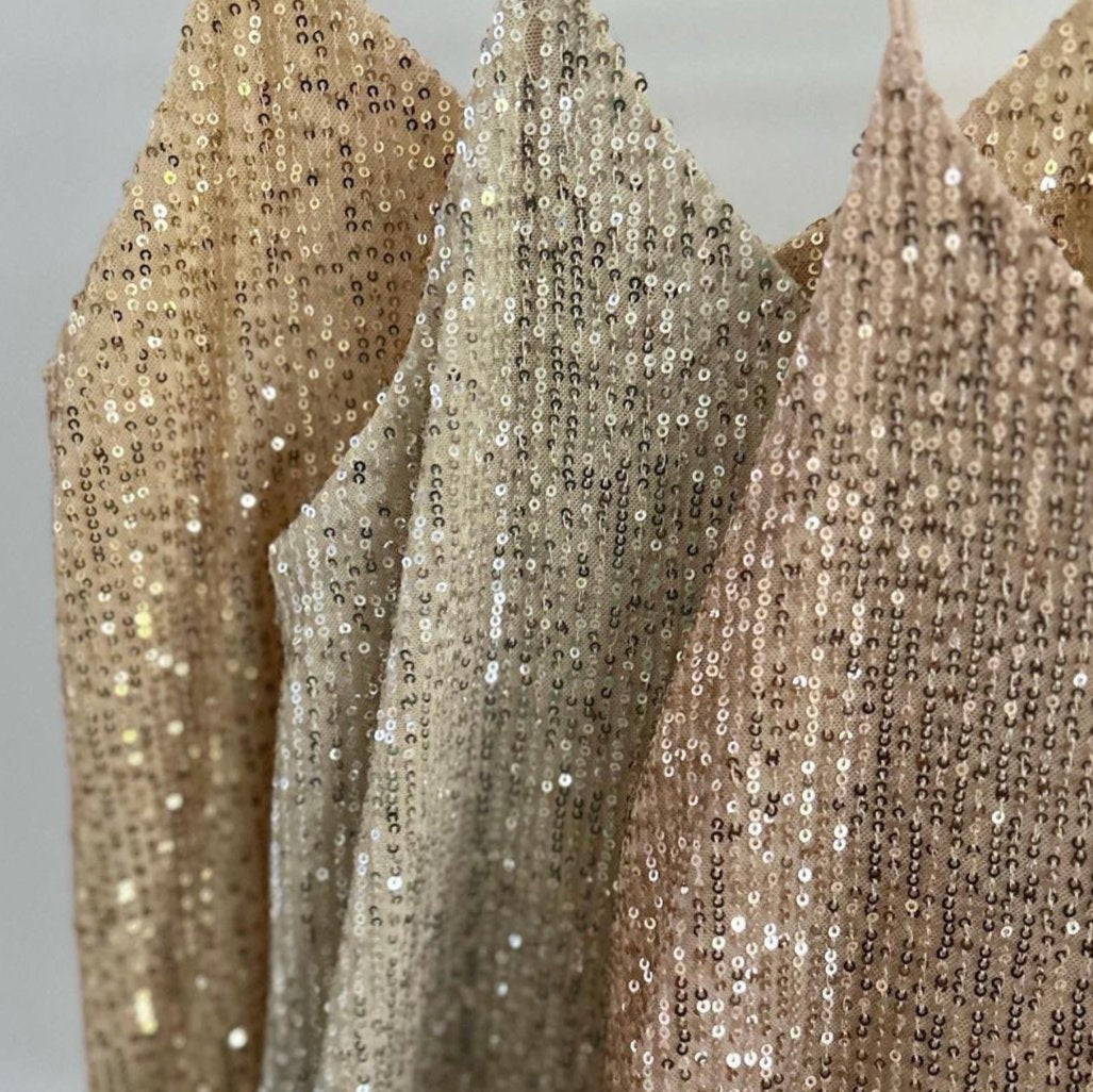 Sequin tops are perfect to elevate any outfit! You can wear with shorts, jeans or one of our MGD wrap skirts! Perfect for summer or in cooler months underneath a smart blazer or denim jacket. Made with personally selected sequin fabric that has a nice stretch and lined with soft stretch jersey makes this top very comfortable to wear. Satin spagetti straps to finish gives this top an elegant style.